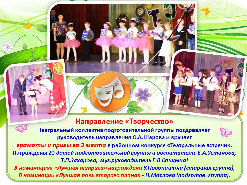 Танцевальный коллектив девочек старшей группы, занявший 1 место в Конкурсе "Уральские звездочки", проводимого в рамках районного фестиваля "Самые юные интеллектуалы Байкаловского района" 16.03.2012г., за исполнение танца "Воспоминание о зиме". Руководитель Михайлова Светлана Геннадьевна.