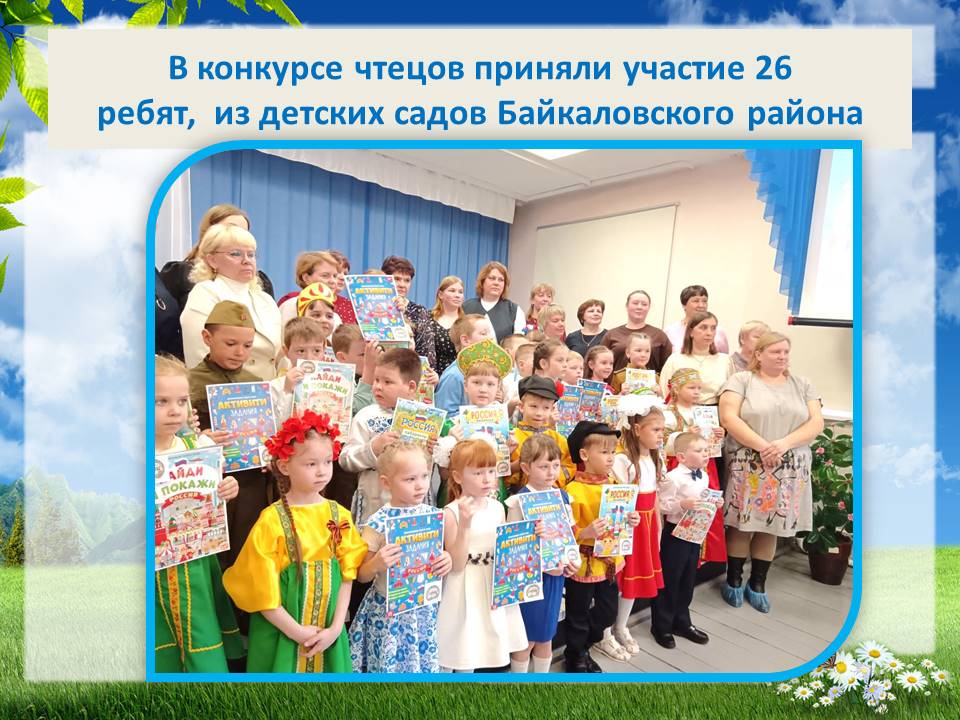 Попову Софью, воспитанницу подготовительной группы, дипломанта Конкурса чтецов стихотворений из поэтической тетради местных авторов, проводимого в рамках районного фестиваля "Самые юные интеллектуалы Байкаловского района". 03.03.2012г. Руководитель Чебыкинв Вера Викторовна.
