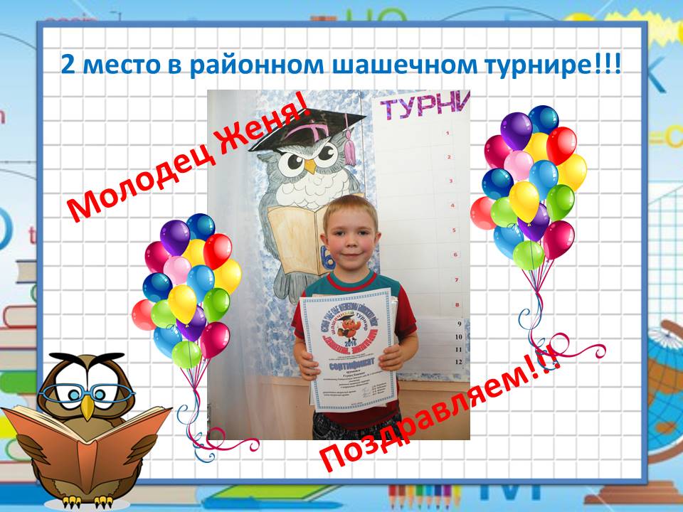 Поздравляем Боровикова Никиту занявшего первое место и Попову Соню занявшую второе место в районной мини - олимпиаде "Интеллектуальная радуга" проводимой в рамках районного фестиваля "Самые юные интеллектуалы Байкаловского района". 17.04.2012г